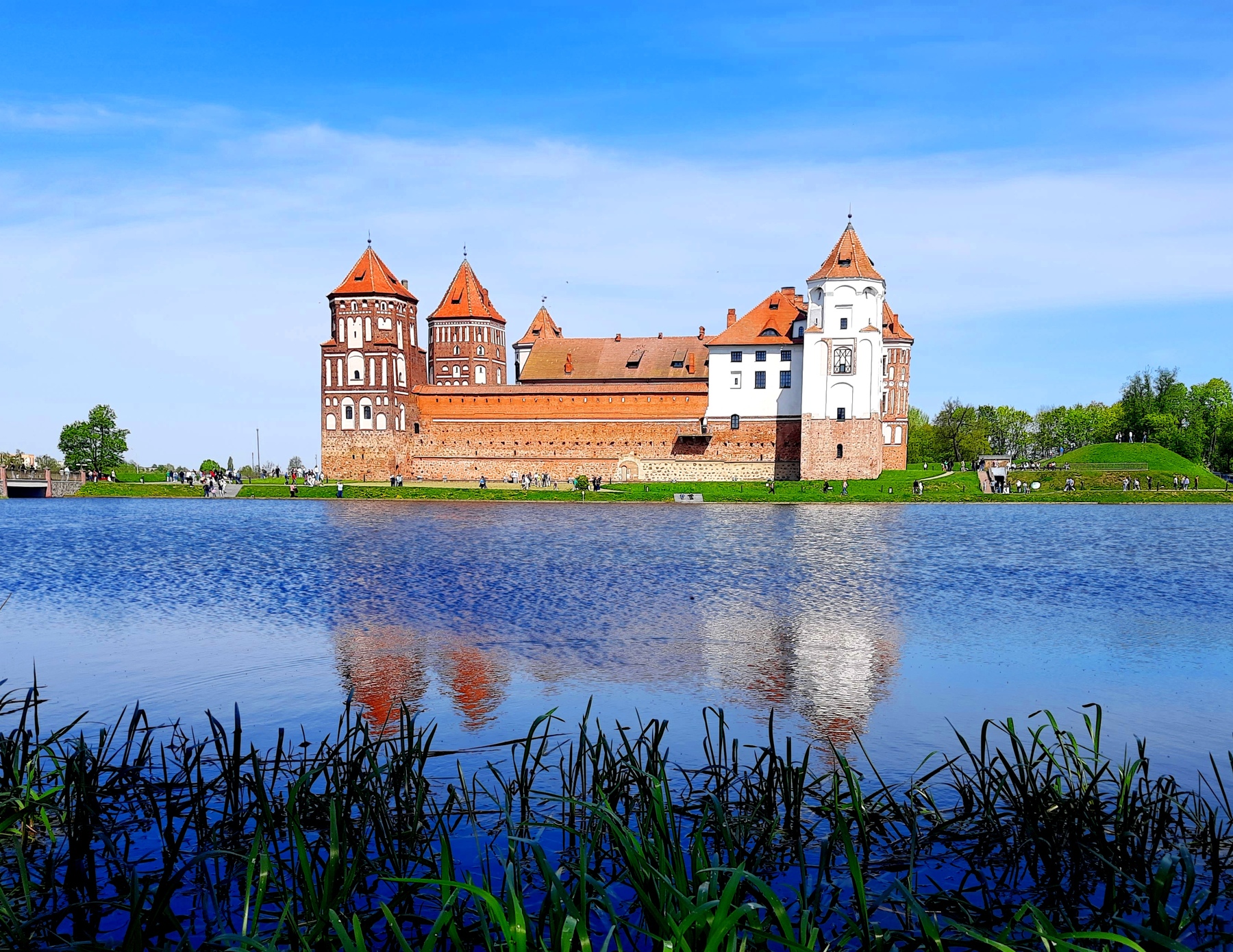 Получасовой переезд в Мир.  Величественный Мирский замок, построенный в первой четверти XVI в., его яркий архитектурный облик, мощные стены и башни, мощенный камнем внутренний двор оставляют незабываемые впечатления, дополняемые осмотром музейной экспозиции. Погружение в атмосферу жизни его владельцев начинается с подвалов, где хранились съестные припасы и находились винные погреба, и заканчивается Бальным залом, утопающим в роскоши рококо… Рядом с замком – исполненная в стиле модерн церковь-усыпальница последних титулованных владельцев замка – князей Святополк-Мирских.