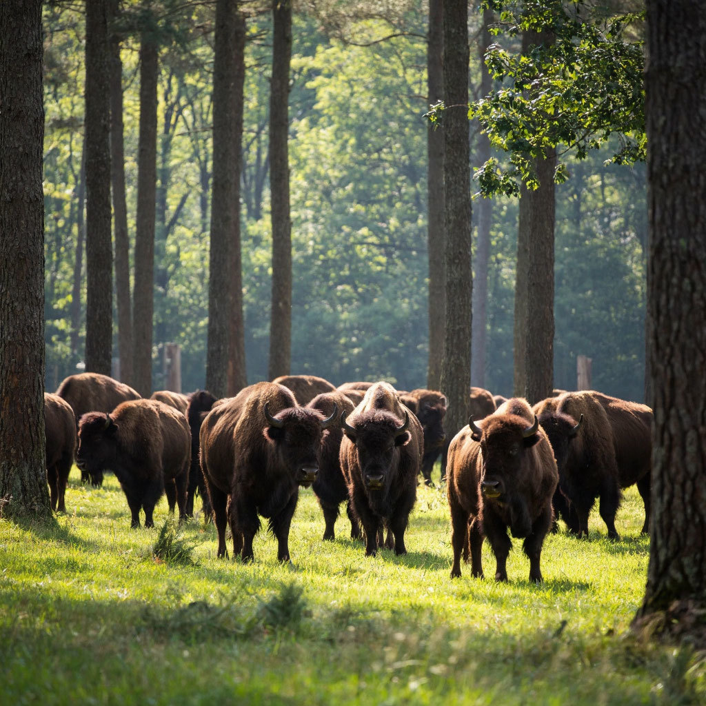 Посещение вольеров с животными – это небольшой лесной зоопарк площадью 20 га, где можно полюбоваться величественными зубрами, грациозными оленями и косулями, увидеть осторожную рысь, волков, медведя, лисицу, некоторые виды хищных птиц и многих других. Свободное время для фотографирования и покупки сувениров из дерева, глины, соломки.