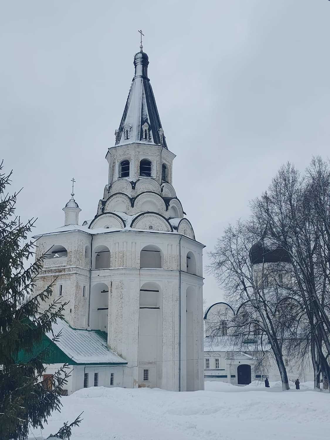 Спасо-Преображенский собор XVI в., расположенный на территории, построен в традициях древней белокаменной архитектуры Суздаля и хранит уникальные фресковые росписи. Рядом с собором находится редкий памятник – звонница XVI века. Обратите внимание на часы...как и в древности они имеют одну часовую стрелку, а вместо цифр – буквы кириллицы. По возможности, мы услышим и знаменитые Суздальские звоны, которые раздаются с колокольни монастыря всего несколько раз в день.